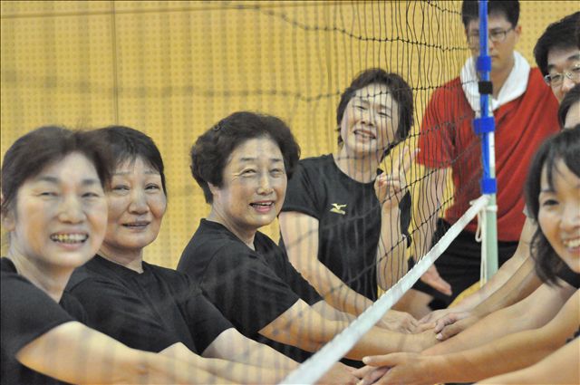 参加者の方たちをむかえて「平成23年 緑井体協親善ソフトバレーボール大会」開幕です!