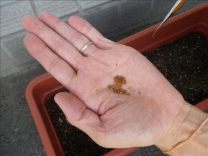 小さい芽が出たら、間隔を広げる「植え替え」をしろって種の袋に書いてあるんで、