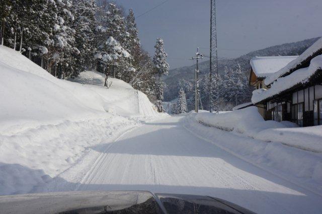 加計近くなってきたら道の脇には積もった雪が…