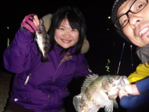なかなか良いサイズのアタリが出始めて、楽しむ2人。