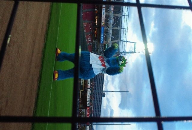 と、ここで、スライリーがサインボールをスタンドに投げ始めた!