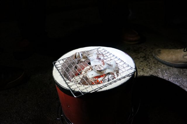 あまりにタチウオが釣れんので、前回に続きウノシンが七輪であたりめ焼き始めて、