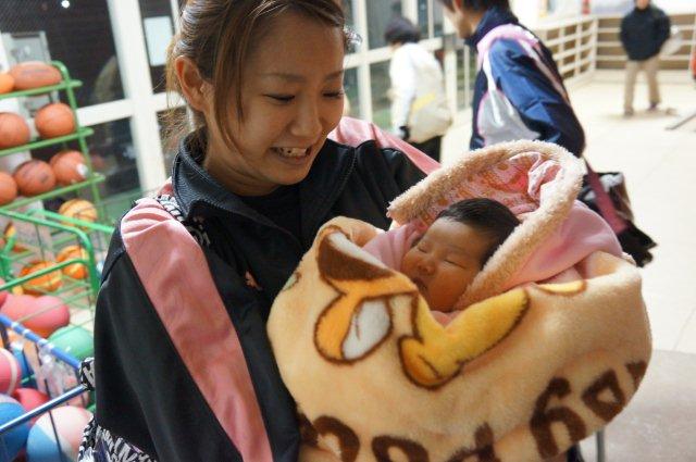 「赤ちゃん連れて来とるなう」