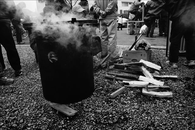おじいちゃん、おっちゃんの男性陣はもち米炊きに餅つき。