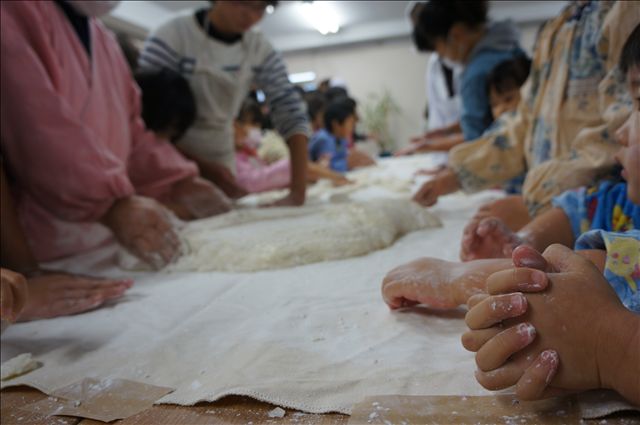 おばあちゃんやおばちゃんたち、それからチビッコはコネコネ。