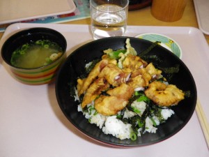 僕は、そこで有名?定番?の「タコ天」を丼に盛ったその名も「タコ天丼」を食べました。