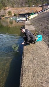 最初の1匹目はトラウト慣れしてる藤井くん!