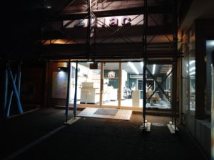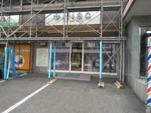 足場が組まれて店前の駐車場が入れにくく…