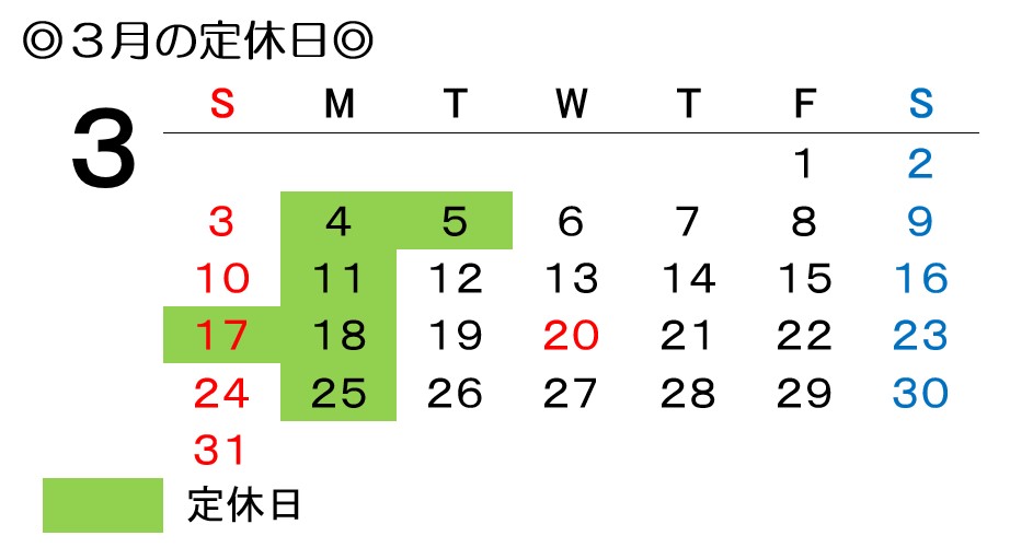 マラソン大会行ってきます 2024年3月16日 ヒゲメガネブログ 明日は第3日曜日の定休日ですので、 今週の営業は本日までm(__)m 定休日のカレンダー⇩⇩ 17日(日)・18日(月)が 連休となりま …